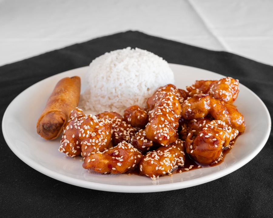 Crispy, breaded jumbo shrimp sautéed in our legendary sweet, tart, spicy, and aromatic sauce. Finished with a light dusting of sesame seeds