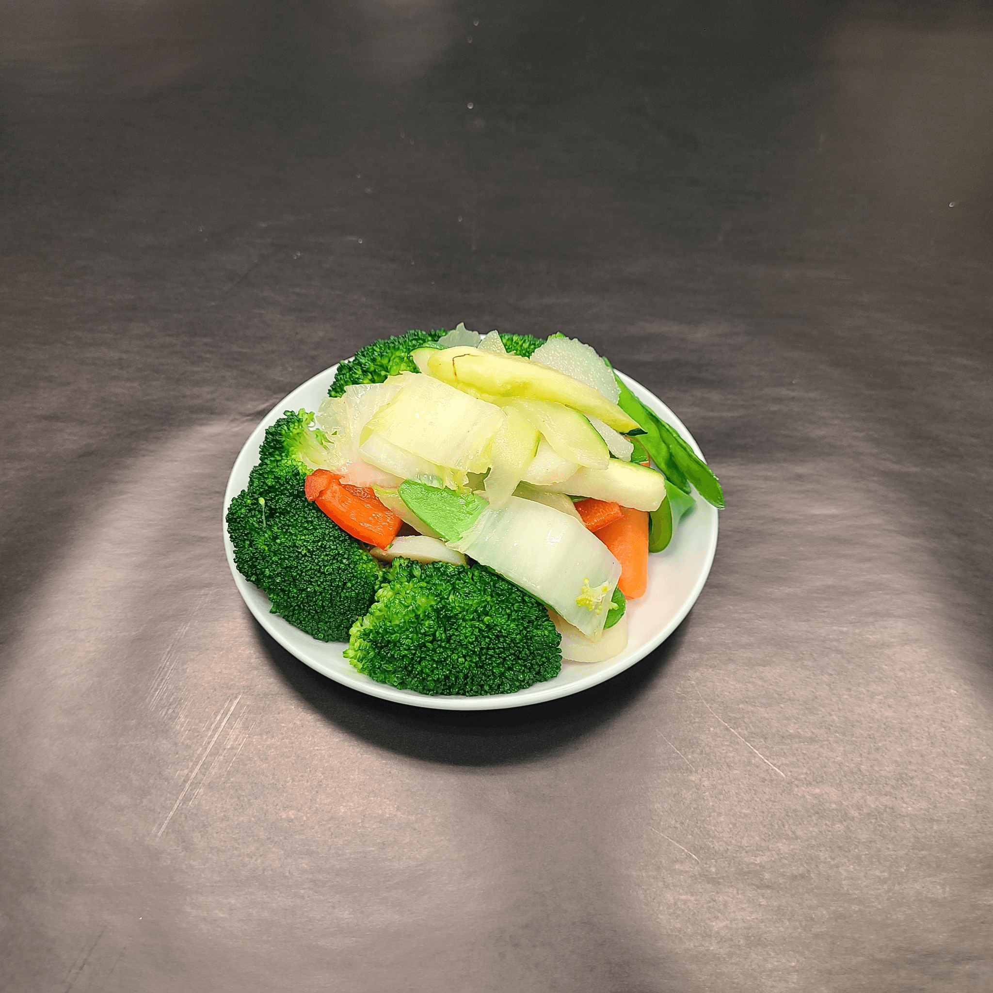 Your favorite assortment of fresh chinese vegetables comes together for this dish. Snow peas, water chestnuts, broccoli, and carrots sautéed together in our savory, aromatic white sauce