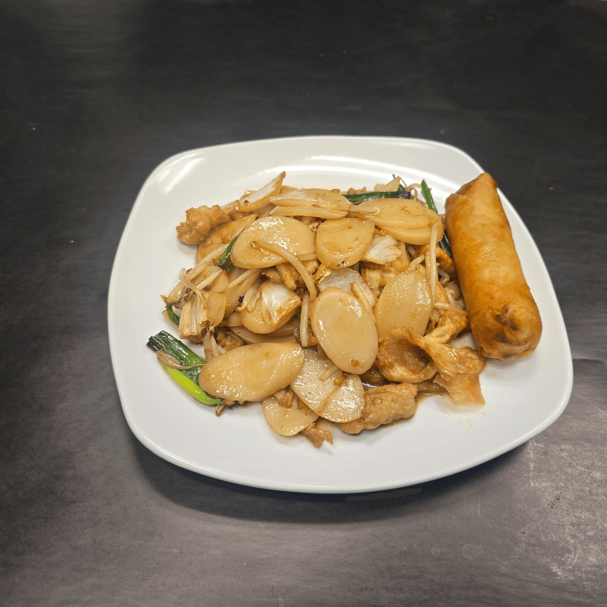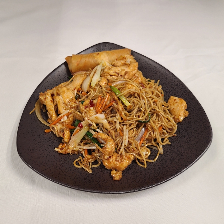 Wok-tossed flour noodles sautéed with onions and carrots in an aromatic light, and flavorful sauce