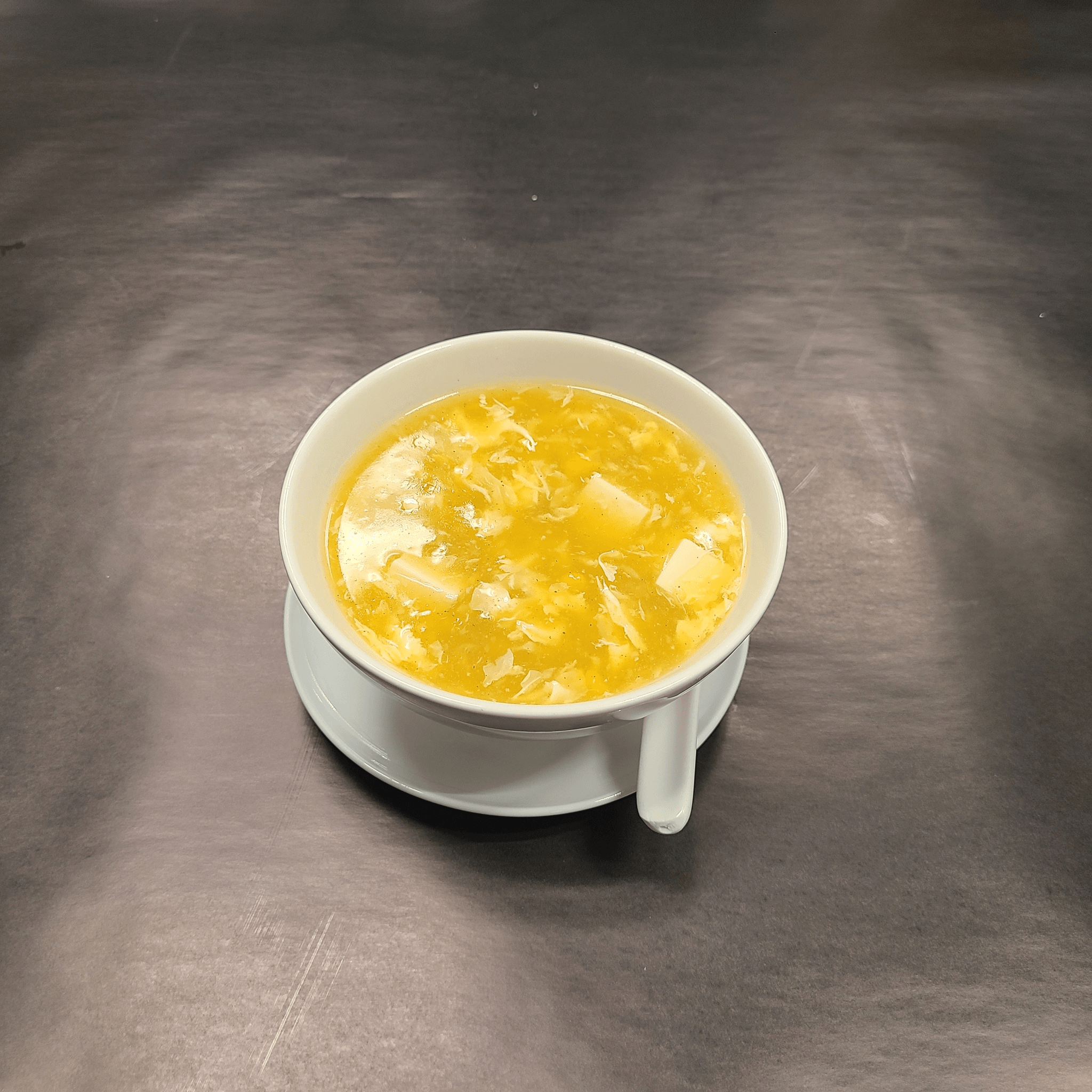 White rice eggs, green peas & carrots sautéed together in a well-seasoned and lightly drizzled soy sauce wok-toss