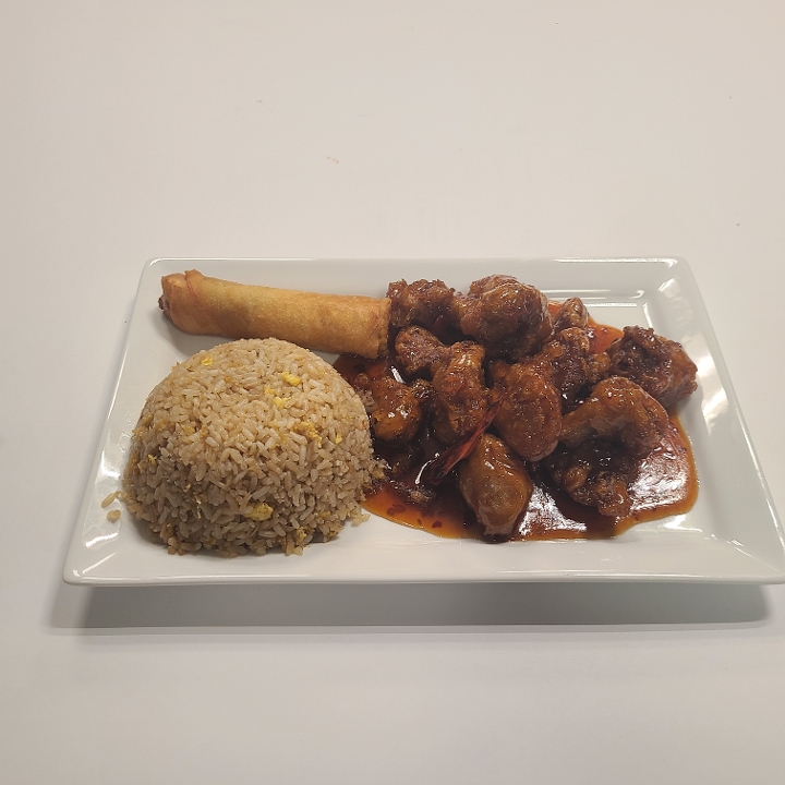 Crispy, breaded white meat chicken wok-tossed in a citrus-based sweet. Spicy, and tart orange sauce
