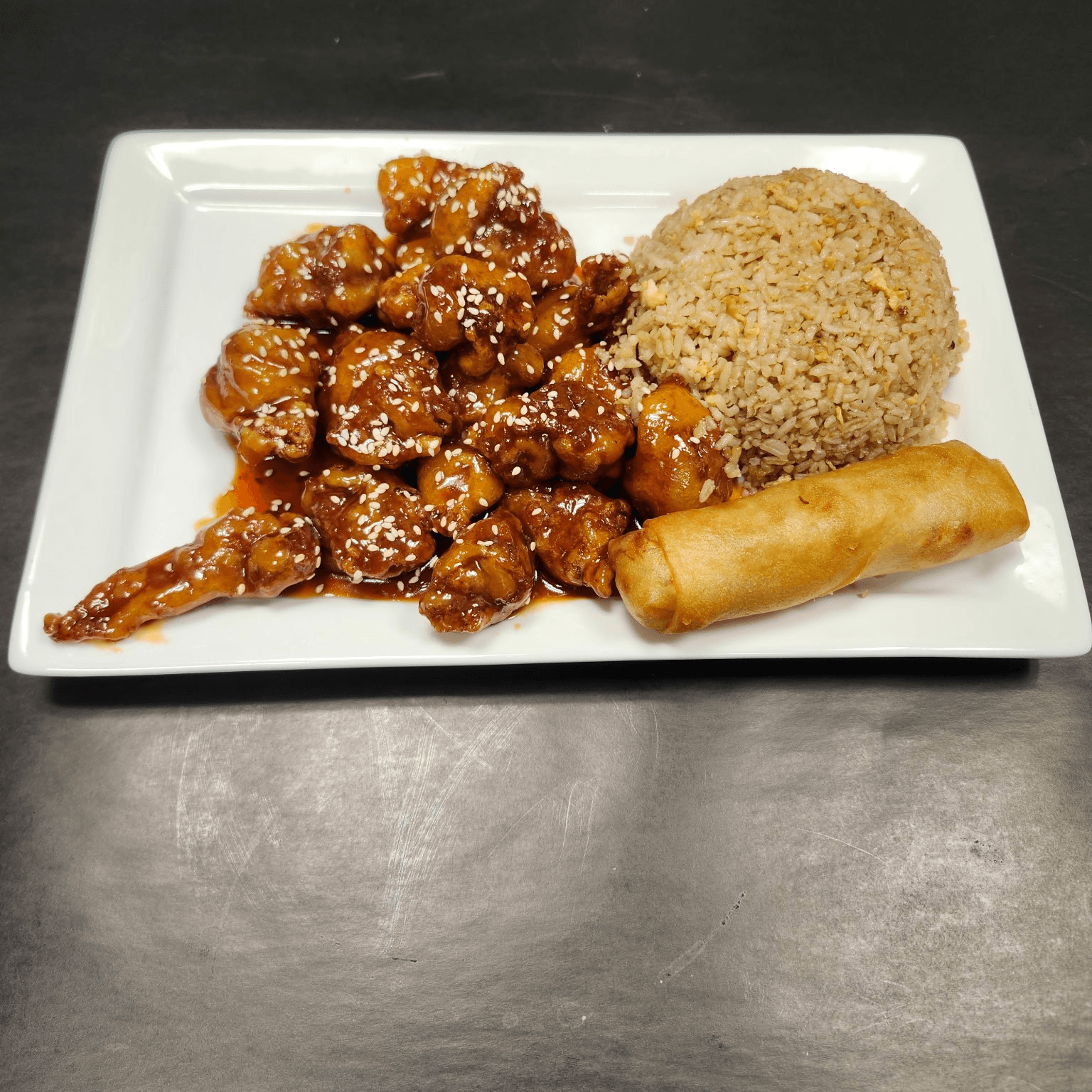 Our most popular dish! Crispy, breaded white meat chicken sauteed in our legendary sweet, tart, spicy, and aromatic sauce. Finished with a light dusting of sesame seeds