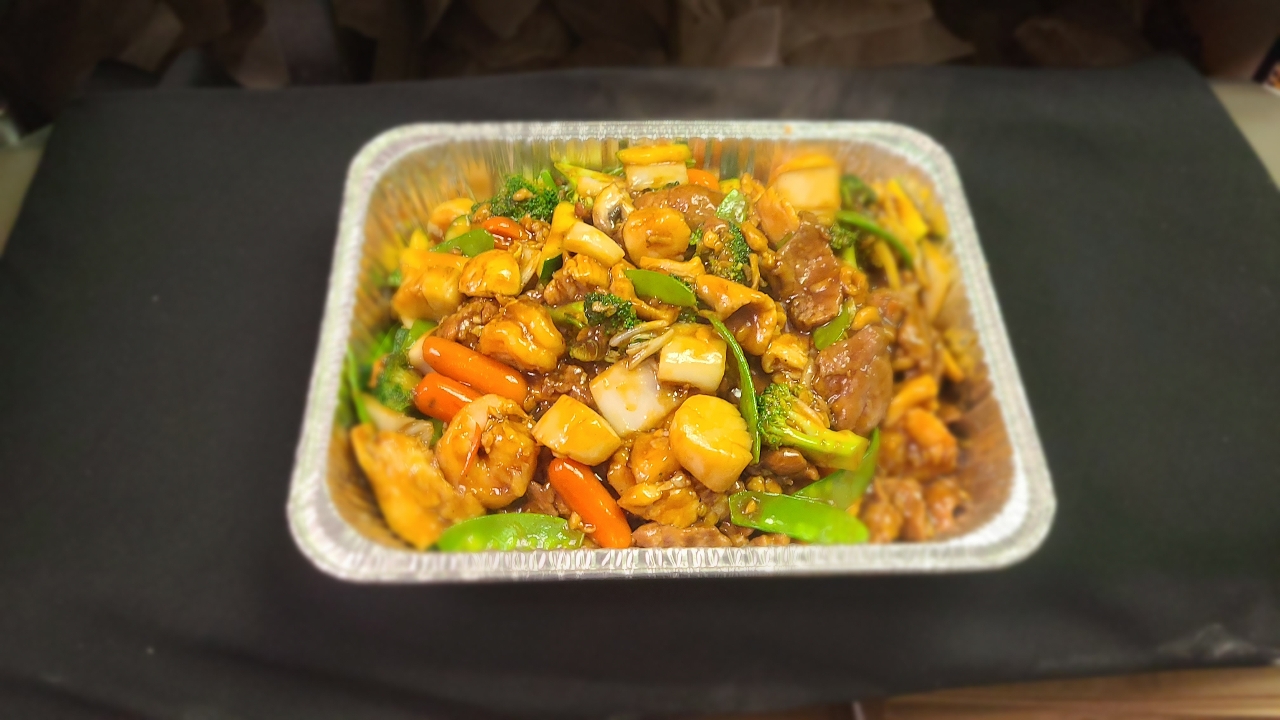 Every member of the family comes together in this happy assortment of jumbo shrimp, scallops, prime cuts of beef, and chicken sautéed with fresh vegetables in our signature rich and savory brown sauce
