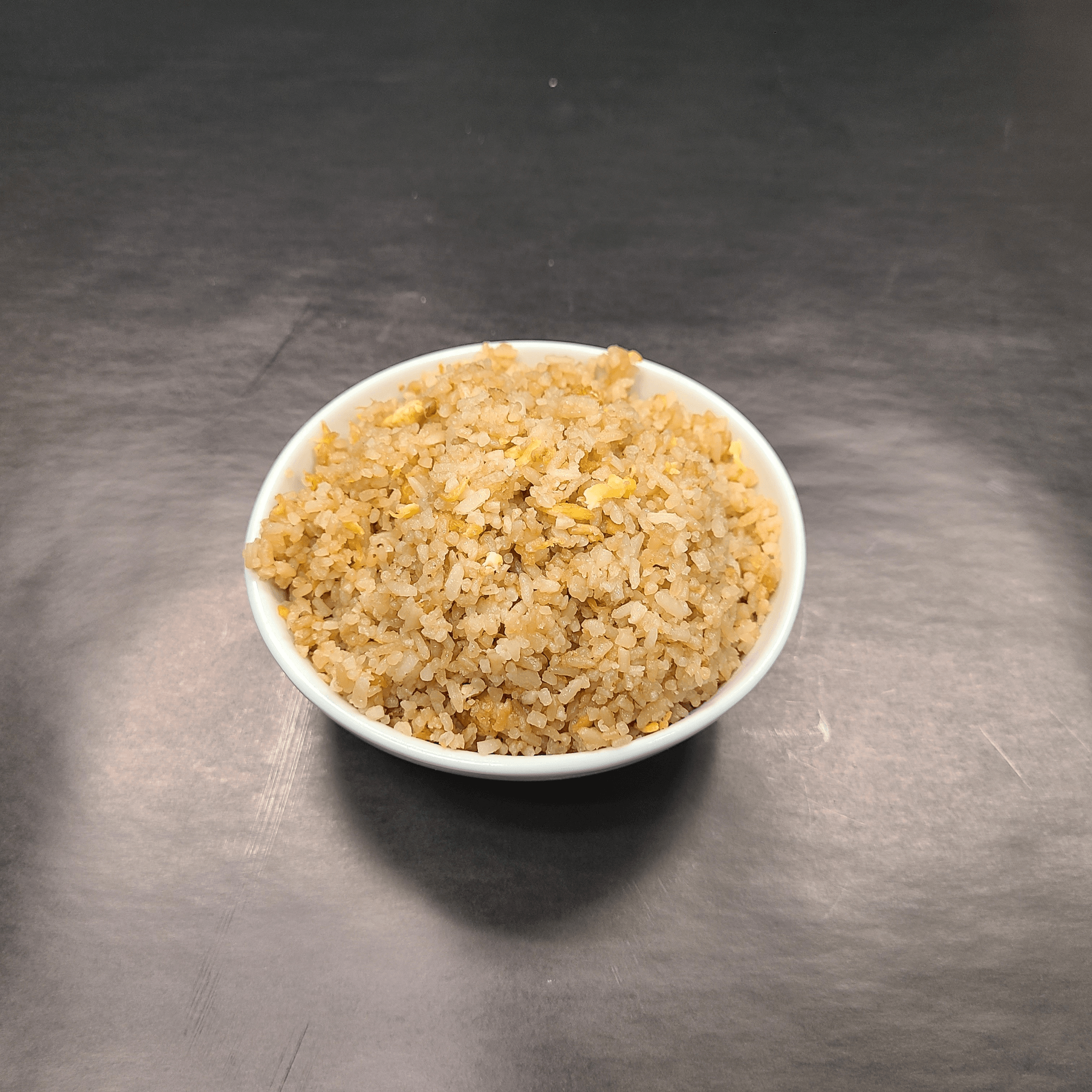 White rice, eggs, green peas & carrots sauteed together in a well-seasoned and lightly drizzled soy sauce wok-toss