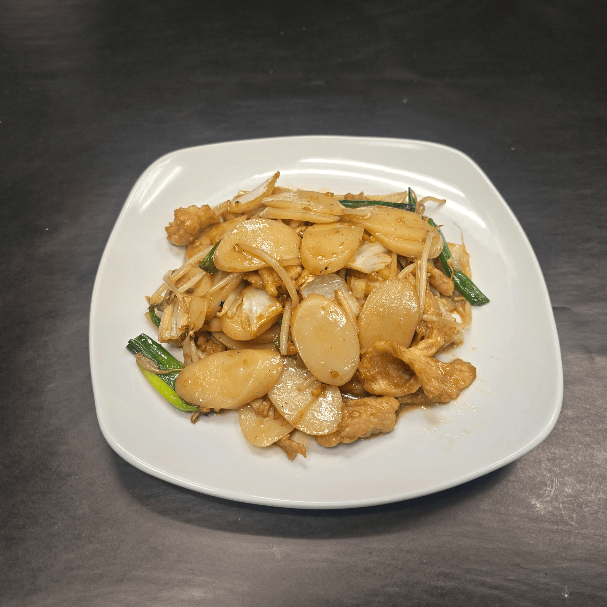 Soft, chewy rice cakes stir-fried with tender sliced beef and fresh vegetables in a savory soy-based sauce. A comforting and flavorful dish inspired by traditional Chinese cuisine from Shanghai.
