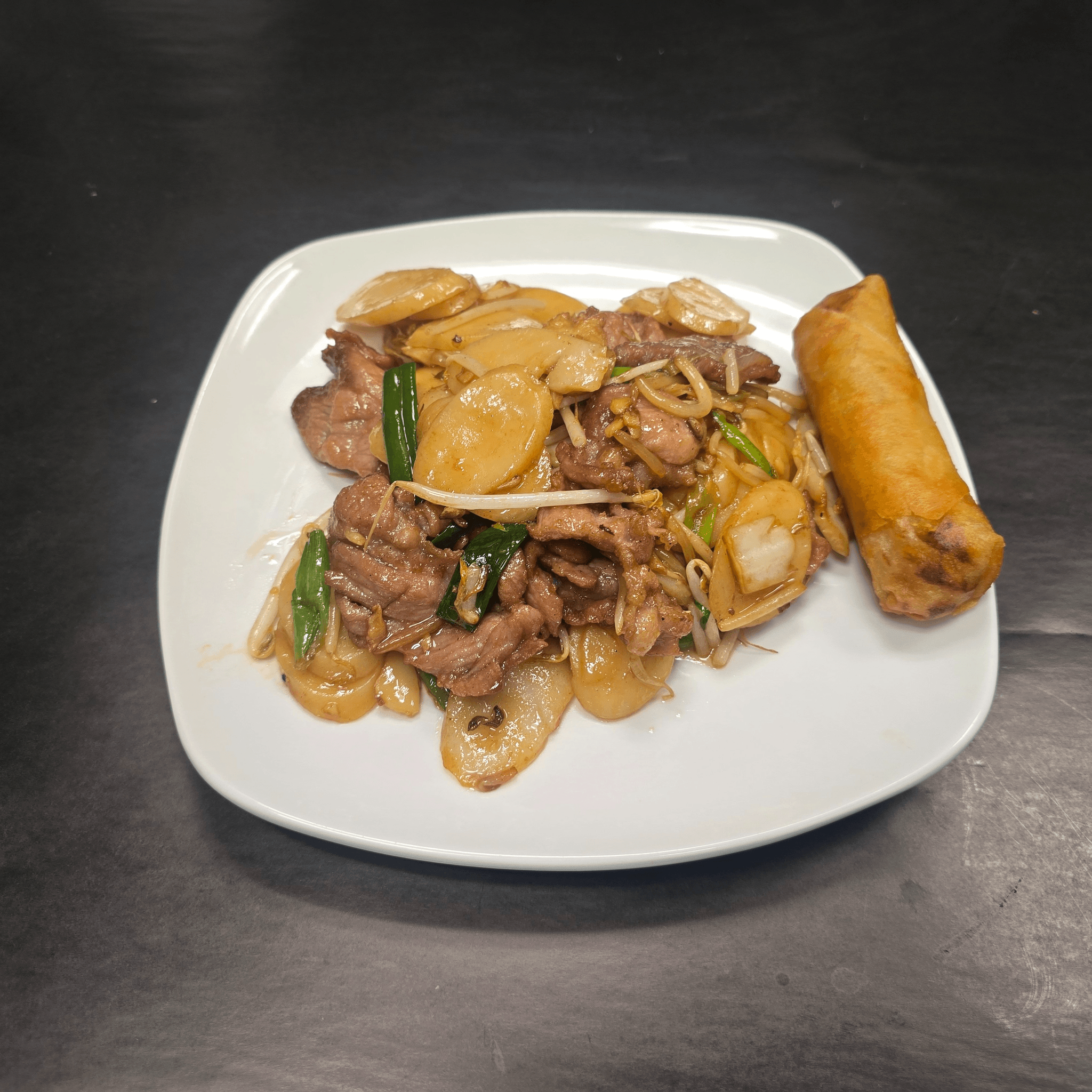 Tender, marinated pork, and fresh vegetables sautéed together in our signature rich and savory brown sauce. Crispy chow mien noodles add the finishing touch